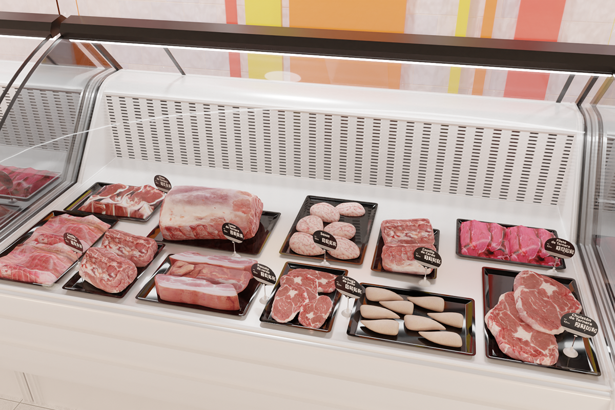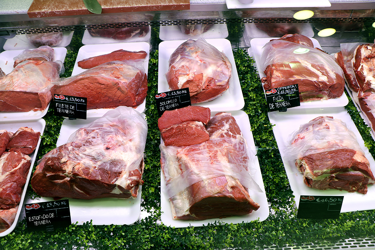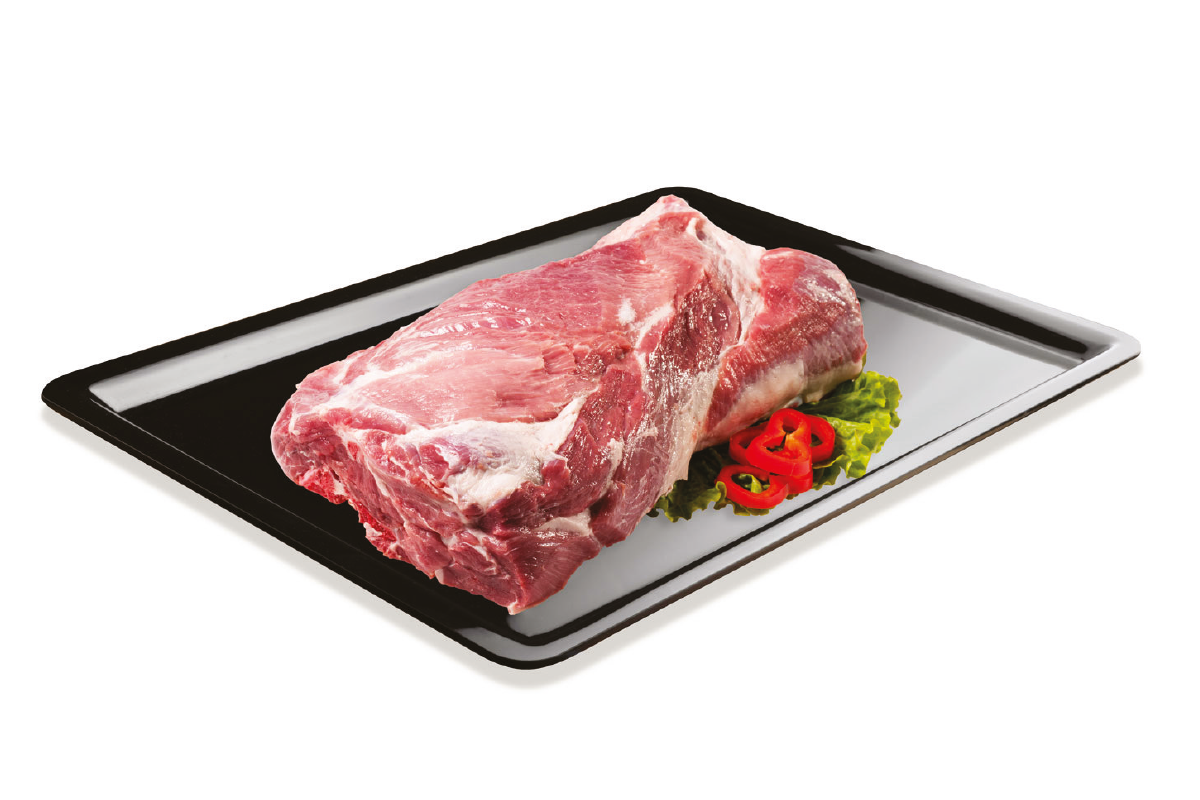 Bandejas expositoras de metacrilato para produtos de açougue e delicatessen