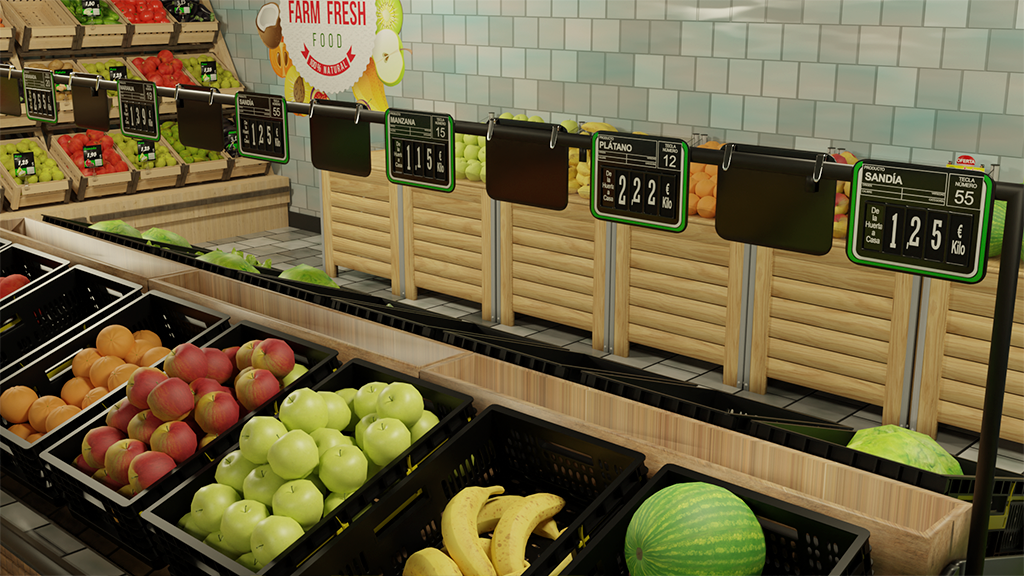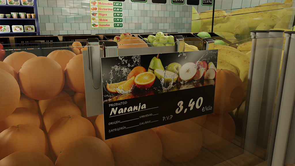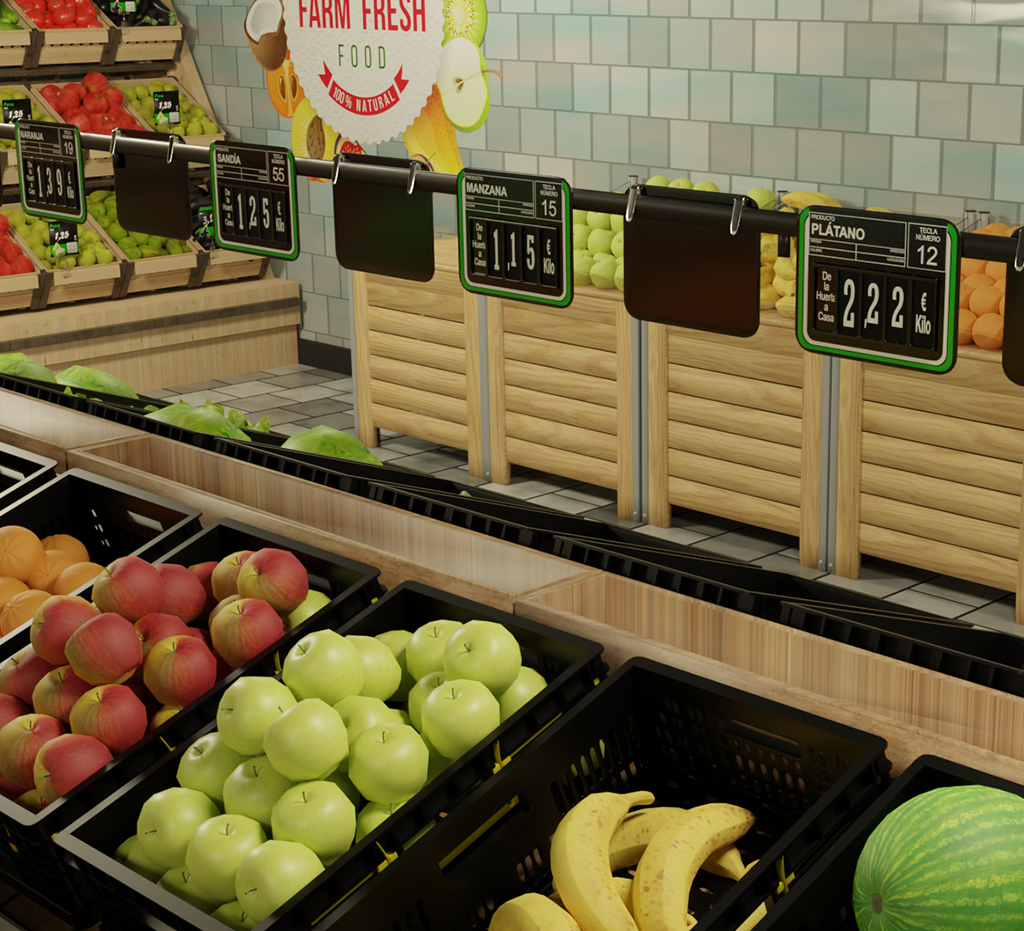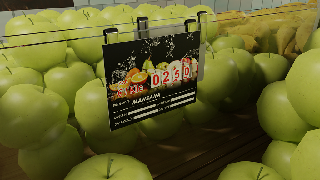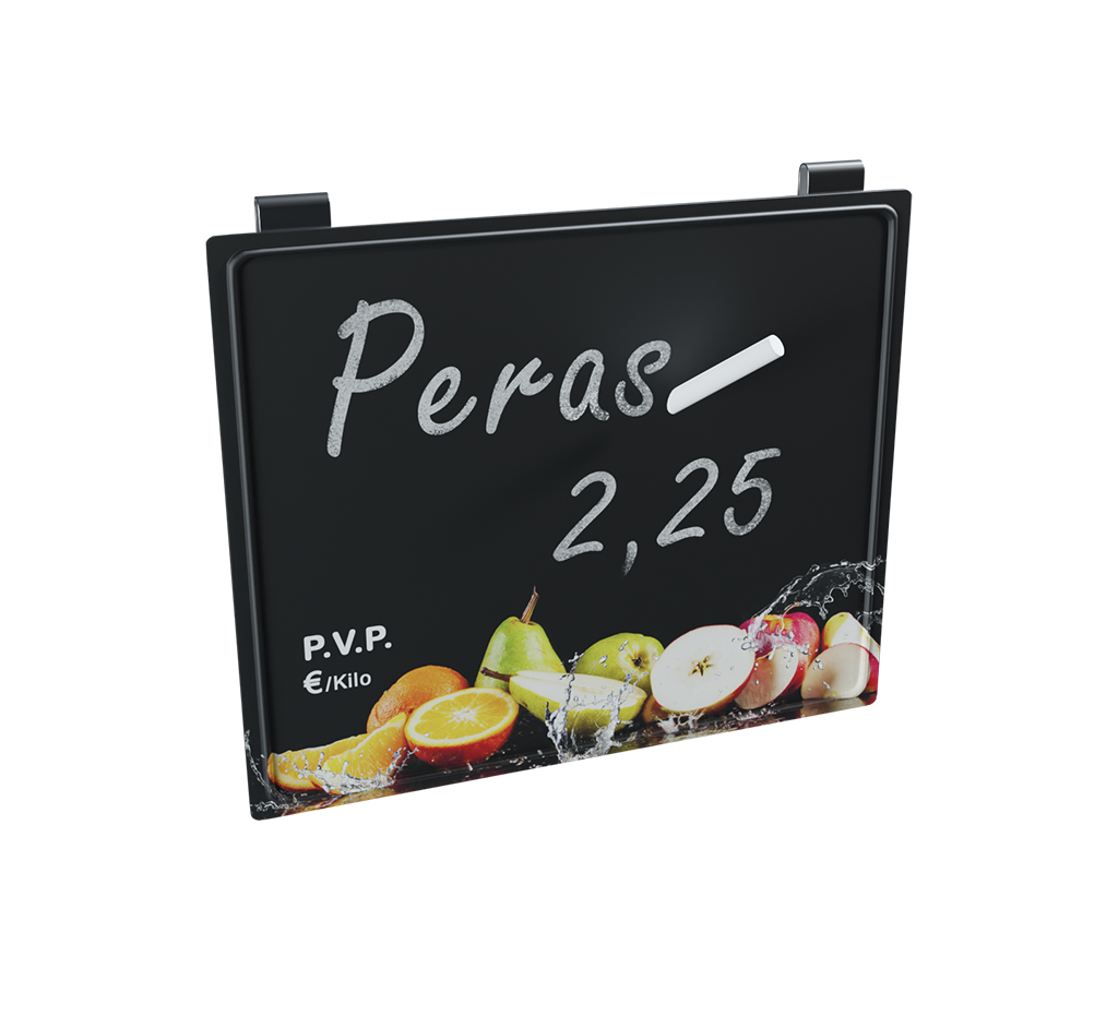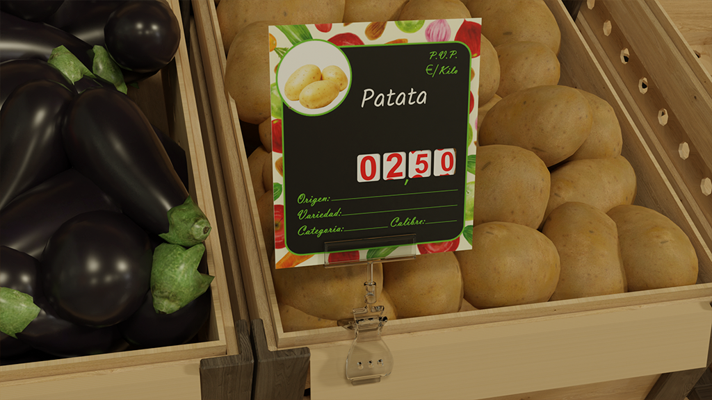 Portador de preços de PVC, com sistema de roleta para definir o preço.